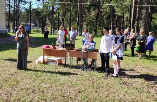 На линейке в подшефной школе № 4 присутствовала начальник отдела по управлению персоналом Русецкая Марина Валерьевна. Помимо поздравлений от Генерального директора и пожелания учащимся, их родителям и ученикам, она передала директору школы офисную технику и волейбольные мячи.